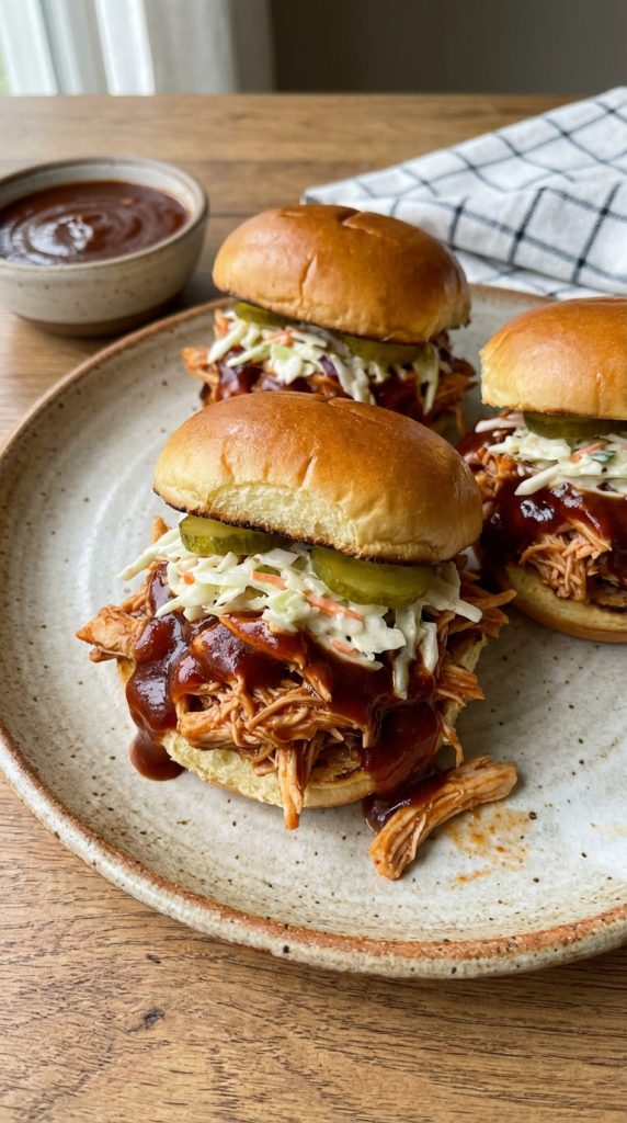 BBQ Chicken Sliders Recipe: Juicy Chicken, Sweet BBQ Sauce, and Creamy Slaw on Soft Buns