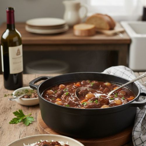 There is something very special about taking simple ingredients like beef, onions, carrots, mushrooms, and rice, and turning them into a meal that feels truly memorable. This beef bourguignon and rice invites you to slow down a little, enjoy the gentle simmer of the pot, and look forward to sharing a warm, generous plate with the people you care about.
