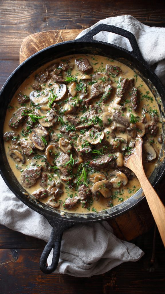 Once you have walked through these simple steps—searing the beef, building flavor with the onions and mushrooms, gently simmering with white wine and beef broth, and finally enriching everything with sour cream—you will likely find yourself returning to this recipe again and again. It is reliable, it is comforting, and it is wonderfully satisfying.