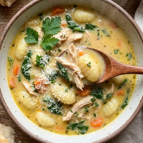 A comforting, comes-together-quick soup featuring tender chicken, pillowy potato gnocchi, and a creamy herb broth. This recipe delivers rich flavors without being heavy, and it can be ready in under an hour. Perfect for chilly evenings or when you want a meal that feels like a warm hug in a bowl.