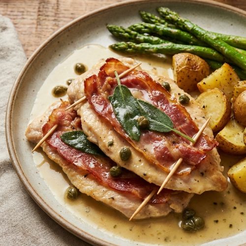 There’s something irresistible about saltimbocca: the way the prosciutto crisps as the chicken stays juicy inside, the perfume of sage that seems to elevate every bite, and the glossy sauce that wraps the flavors together without weighing them down. This version stays faithful to the spirit of the classic Italian technique while offering a streamlined approach that avoids lengthy simmering and heavy prep. Here’s what makes it special: