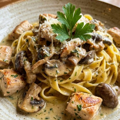 This dish balances textures and flavors in a way that feels indulgent yet straightforward. The chicken stays tender from quick sautéing, the mushrooms provide a savory, earthy note, and the creamy sauce ties everything together with a gentle richness. Parmesan adds a sharp, salty bite that brightens the sauce, while a splash of pasta water helps achieve the perfect cling factor so the sauce coats the noodles rather than pooling on the plate. It’s a crowd-pleaser that comes together with minimal fuss but delivers maximum comfort.