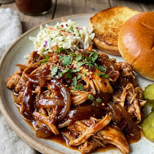 A cozy, hands-off crowd-pleaser built in the slow cooker. Juicy shredded chicken bathed in rich BBQ flavor, ready to pile onto buns, wrap in tortillas, or serve over rice. Simple ingredients, big impact, and a comforting aroma that makes weeknights feel like a homey weekend dinner.