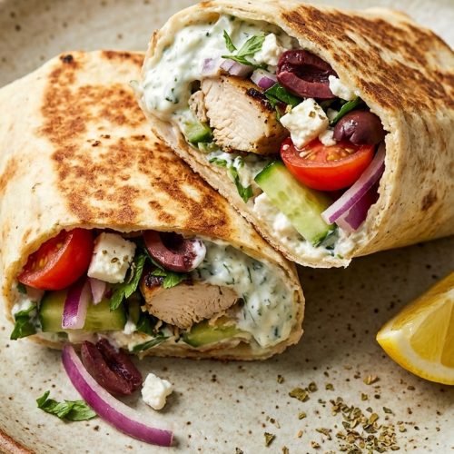 There are a few reasons this wrap shines. First, the flavor profile is bright and comforting at the same time — oregano, garlic, and paprika give a sun-kissed, Mediterranean vibe without requiring a long list of ingredients. Second, the wrap is adaptable: you can switch to a gluten-free tortilla, add olives for a briny kick, or toss in bell peppers for extra sweetness. Third, it’s fast and practical. The chicken cooks quickly, and the yogurt sauce can be made in advance or whisked together right before serving. Finally, it’s balanced: protein from the chicken, fiber from the veggies and wrap, and calcium from the feta, all wrapped up in a convenient handheld meal.