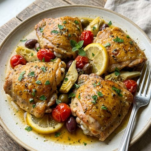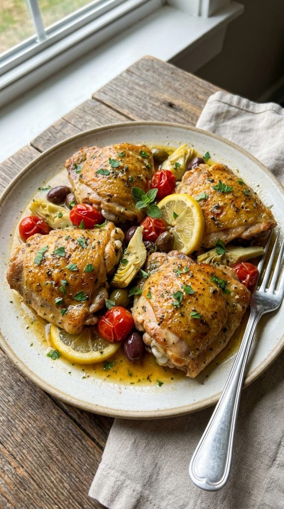 What makes this recipe especially welcoming is how flexible it is. If you’re short on time, you can skip the olive mix and capers or swap in artichoke hearts for a different dimension. If you want a lighter version, you can trim the butter or use skinless thighs. And because the flavors lean Mediterranean, you can pair it with a wide range of sides—from a garlicky quinoa to roasted vegetables or a bright cucumber salad. It’s a forgiving dish that earns enthusiastic smiles at the table.
