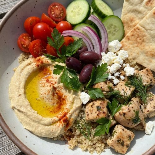 - Mediterranean Chicken and Hummus Power Bowls