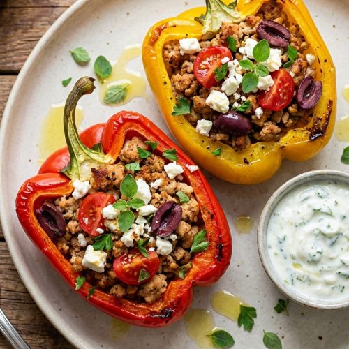 Imagine a plate that bursts with color, aroma, and comforting flavors—all in one neat, nutritious package. Mediterranean Ground Chicken Stuffed Peppers are that dish. Bright bell peppers cradle a savory filling of lean chicken, quinoa, tangy feta, and warm Mediterranean spices. It’s a weeknight superhero: quick to assemble, light on cleanup, and big on flavor. This recipe walks you through every step with warmth and clarity, so you can feel confident in the kitchen whether you’re cooking solo or feeding a small crowd.