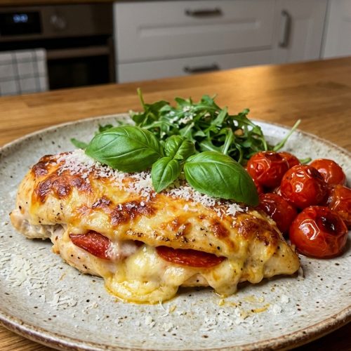 A delicious and comforting fusion dish that wraps classic pizza flavors into tender chicken breasts. Juicy chicken bursting with melty cheese, tangy marinara, and savory toppings, all baked to golden perfection. It’s simple to prepare, family-friendly, and doubles beautifully for leftovers.