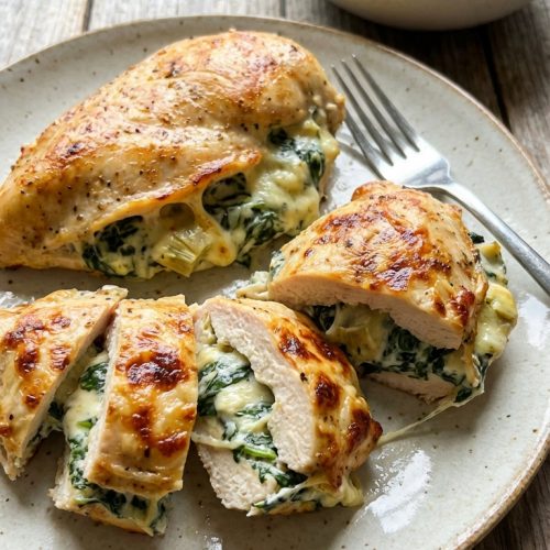 Imagine a weeknight dinner that feels indulgent but isn’t heavy—and it all comes together in under an hour. Spinach and Artichoke Stuffed Chicken is that exact dish. Juicy chicken breasts crack open to reveal a creamy, garlicky filling full of spinach, artichokes, and melted cheese. It’s comfort-food vibes with bright, tangy notes, and the best part is you can customize the filling to your taste. If you love a little extra lemon brightness or a touch more garlic, this recipe adapts beautifully.
