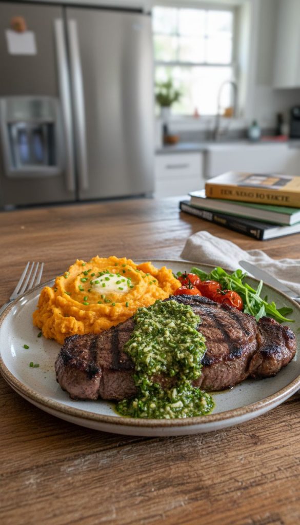 Imagine a weeknight where a sizzling steak meets a lively, herbaceous green sauce and a generous scoop of creamy, buttery mashed sweet potatoes. That’s this recipe: comforting, elegant, and surprisingly easy to pull together. You’ll get the satisfying sear of a well-cooked steak, bright freshness from the green sauce, and the cozy sweetness of smooth mashed yams that make every bite feel balanced and complete.