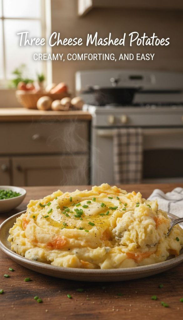 Three Cheese Mashed Potatoes — Creamy, Comforting, and Easy
